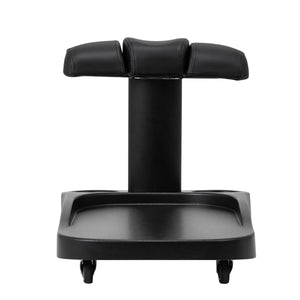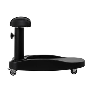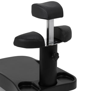 The footrest is made up of three parts, of which the middle one is extendable. Manual height adjustment allows it to be raised by a maximum of 20 cm. All elements of the footrest are upholstered with synthetic leather, which ensures resistance to moisture and ease of cleaning. As a result, the trolley can be adjusted to the individual needs of the user, which makes it an excellent solution for both cosmetic and podiatric treatments, ensuring comfort and precision of work in various positions.