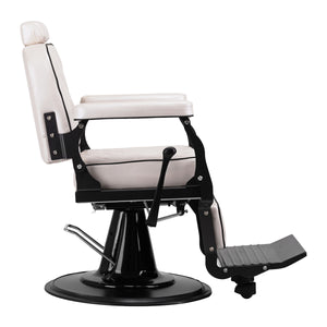 The solid base ensures stability and high comfort of use. The seat filling made of deformation-resistant foam and upholstery made of pleasant-to-touch synthetic leather with a pearl finish ensure durability and comfortable use for a long time. These materials are moisture-resistant, durable, and easy to clean. The cream shade of the upholstery gives the armchair a unique character, and its elegant style blends perfectly with barbershop decor.