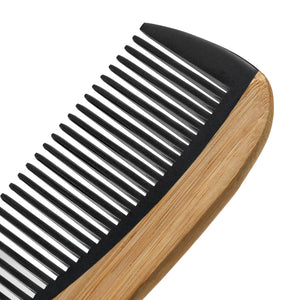 The profiled handle gives the comb a modern look, while ensuring lightness and comfort of use. Bamboo is an excellent material – eco-friendly and durable, more resistant to moisture than wood. The wide profile guarantees a secure grip and precise maneuvering during styling, which allows you to achieve professional effects. The comb is equipped with small, narrowly spaced teeth in shades of black, which are gentle on the hair, minimizing the risk of damage and giving it smoothness and shine.