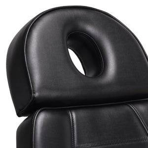 The electric cosmetic chair Sillon Lux 273B is equipped with 3 actuators controlled by a remote control on a cable, which allows for smooth adjustment in three planes – it has adjustable height and angles of the backrest and footrest. The seat height is adjustable from 65 cm to 84 cm, and when fully unfolded, the armchair reaches a length of over 2 meters. The equipment can be freely unfolded to the couch position, which, combined with the hole in the headrest hidden under the cap, significantly increases its functionality for face and body services.
