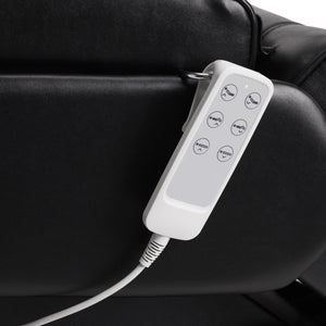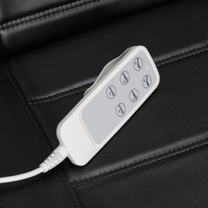 The chair is also equipped with movable armrests, a retractable headrest and a metal holder for hanging the remote control. The chair is filled with foam of appropriate hardness and covered with pleasant-to-the-touch synthetic leather in shades of black, thanks to which the equipment is comfortable to use, resistant to moisture and easy to clean. Decorative wooden elements on the armrests distinguish the chair from other models, being a visually attractive, elegant accent. Properly profiled hems give the chair a stylish look and make the seat ergonomic.