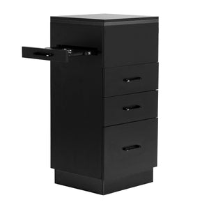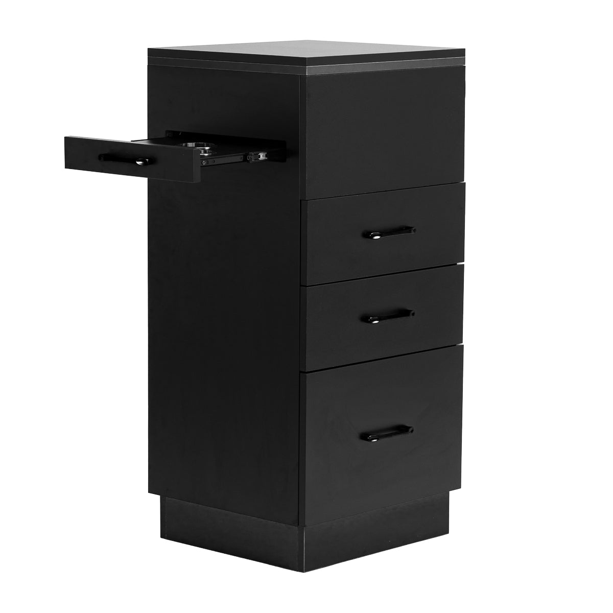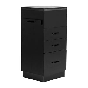 The Gabbiano 2027B hairdresser's helper is an elegant piece of equipment which will emphasise the character of a professional interior and improve everyday work organisation. The furniture is distinguished by its minimalist form in shades of black, which gives it a unique, luxurious look.