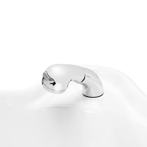 The hairdressing wash unit is equipped with a mixer faucet, which ensures constant access to hot and cold water. This allows you to easily adjust the temperature to the customer's preferences. A shower handset with a 120 cm long hose and a dedicated place to put it, make work easier, while a chrome stopper with a special strainer allows you to control the water flow and maintain high hygiene standards in the salon. The water connection has been placed inside the column, which allows for efficient hiding of any pipes, while the easily removable panel provides hassle-free access when necessary. The chair is profiled to ensure comfort during various treatments, while the footrest provides excellent support for the legs. The combination of functionality and amenities will make working in a hairdressing salon even more comfortable.