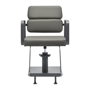 The full rotation mechanism of the chair makes the hairdresser's work more effective and comfortable. A solid, flat, square-shaped base guarantees stability during use. The matte-finished, smooth surface gives the element an elegant look and makes it easy to keep clean. A comfortable seat with foam filling ensures high comfort of use, even during many hours of treatments. Geometric, metal armrests allow for the correct positioning of the client's shoulders – this means that he does not bury his head in his shoulders or slouch – which makes it much easier to perform precise treatments, including haircuts. A stylish footrest dedicated to this model provides stable support for the user's feet.