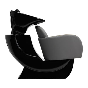 Appropriate depth ceramic bowl in shades of black prevents excessive splashing of water and products used during the treatment. It allows you to comfortably and effectively perform a wide range of services. The mobility of the bowl allows you to easily adjust the angle of its inclination to your individual needs. The material used makes the washbasin durable, resistant to discoloration and scratches, and very easy to keep clean. A properly profiled collar provides optimal support and comfort when washing the hair, and a comfortable plastic cover in shades of black means that the client will not feel the unpleasantness of the cold ceramic surface.
