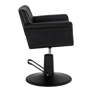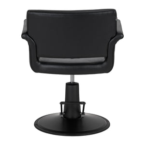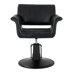 The Gabbiano Lucca hairdressing chair combines modern simplicity with the comfort of everyday use. The round, black base ensures stability, while synthetic leather upholstery in shades of black ensures comfort during treatments. Durable, moisture-resistant materials make this model not only comfortable but also exceptionally easy to care for, maintaining its aesthetic appearance for years. The distinctive outwardly curved armrests give the chair an elegant look while also supporting a comfortable position for the client. This versatile model will fit perfectly into both modern and more classic interiors, emphasising the professional style of the salon