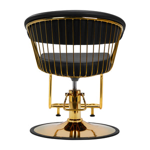 The durable hydraulic lift allows you to adjust the seat height within 48-55 cm, even when the customer is sitting on the chair. This guarantees more ergonomic work, thanks to the ability to freely adjust the level of the chair to the height of both the client and the hairdresser and the option of full rotation. The perfectly profiled backrest covered with synthetic leather allows you to take a comfortable position. This provides adequate support for the back, which is especially important for treatments lasting many hours. A visually interesting element here is a metal, polished, sophisticated detail in shades of gold connecting the backrest with the seat. The spaces created make it easier to keep the salon clean, allowing you to easily sweep hair from every nook and cranny of the chair. This saves time preparing the workstation between clients.