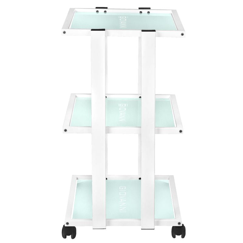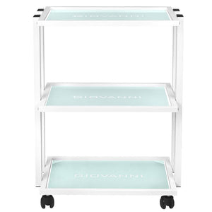 piece of furniture has three glass shelves engraved with the Giovanni logo.