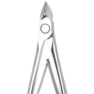 The double spring connecting the nipper arms provides excellent sensitivity and full cutting control. Precise workmanship enables comfortable, quiet, and smooth operation. Proper profiling and optimal handle size ensure that the nippers lie stably in the hand, guaranteeing comfort even during longer treatments. The polished finish gives the tool an elegant appearance, while the passivated surface increases durability and makes cleaning easier. As a result, the nippers are suitable for both professional use and home nail care.