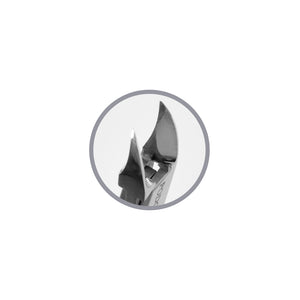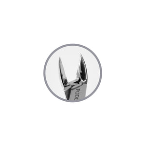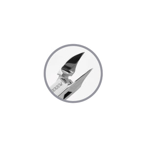 Semicircular ( side) with a sharp tip, safe recommended for children and adults and seniors. High quality stainless steel pliers.