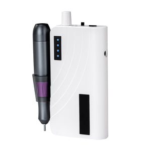The efficient 2,000 mAh dual-focus rechargeable battery, that the device is equipped with, allows for continuous operation for up to 8-10 hours on a single charge. The nail drill operates relatively quietly, which allows comfortable work without irritating noises. This is important both for the person performing the treatment and for the comfort of the clients. While working, the head can be safely hung up thanks to a convenient plastic handle that can be mounted on the side of the device. The kit includes a set of diamond nail drill bits, a carrier and abrasive bands, which ensures versatility of use and facilitates the performance of various treatments.