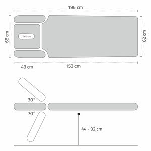 Agila 4 is a 4-section stationary table equipped with a control frame. The model is characterized by: modern design, ergonomic shape, high comfort of use, additional equipment in the form of a disposable roll paper holder. It perfectly fulfills its functions in physiotherapy offices as a rehabilitation table and in massage parlors as a very comfortable massage table.