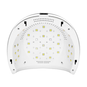 The lamp is equipped with a timer with three pre-programmed working times: 30 s, 60 s and 120 s (the so-called "Low Heat Mode"), which are counted down on a clear digital display. A built-in motion sensor automatically activates the lamp when the fingers of a hand or foot are placed under it, assuming a maximum exposure time of 120 s. This function works when no mode is selected, and the display shows the elapsed curing time. This allows you to freely choose the length of exposure to suit the styling you are doing at the moment. In addition, when the already mentioned "Low Heat Mode" system is selected, the lamp heats up more slowly during curing the styling, gradually increasing its power. This prevents the sensation of burning or heat during exposure. This is an irreplaceable function, especially when curing gels, which often causes discomfort when using other lamps available on the market.