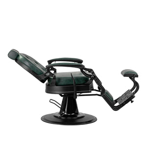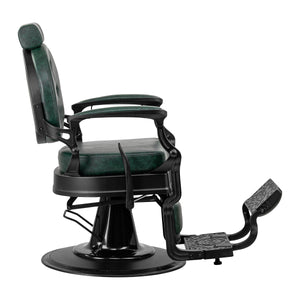 The solid construction of the base ensures stability and high comfort of use. The seat filling is made of durable, deformation-resistant foam and the upholstery is made of pleasant-to-touch synthetic leather with a semi-matte finish, ensuring the durability of the furniture and its comfortable use for a long time. They also make the equipment resistant to moisture, durable and easy to clean. The covering in shades of green with quilting and decorative buttons gives it a unique character. The chair with a characteristic design, referring to the vintage style, perfectly fits the atmosphere of barbershops, emphasizing their unique atmosphere.