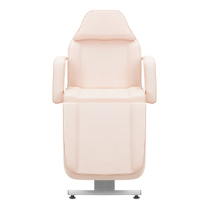 Stable, soft armrests guarantee the user with adequate support. These elements, divided in half, are movable, so they fit well when changing the position of the backrest, and can also be easily removed. Hidden under a properly profiled pillow, an opening in the headrest makes the chair perfect for both facial and back treatments.