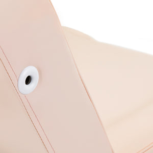 The base of the chair has a constant height, so the seat is at a constant level, which should ensure comfort during use. A solid white metal frame and non-slip feet provide the necessary stability during use. The chair is filled with foam and covered with imitation leather in shades of pink. Thanks to the use of such material, the equipment is comfortable to use, resistant to moisture and easy to clean. Appropriately profiled hems give the seat an ergonomic shape. The simple design and elegant colors make it easy to fit into any interior.