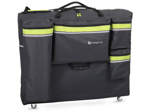 The City massage table cover by Habys is made of very durable material. It is perfect for transport, protecting the table from damage. It has 4 spacious pockets, a shoulder strap, a carrying handle, reflectors, and wheels. Thanks to this, you can fit the necessary massage accessories in it and conveniently reach the client.