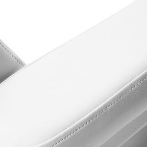 The chair is filled with deformation-resistant foam and covered with a pleasant-to-touch faux leather in a shade of white. This material makes the equipment moisture-resistant and easy to clean. Carefully made stitching adds style, and the solid construction ensures stability and long-term use. The minimalist design and classic color scheme make it a perfect match for any interior.