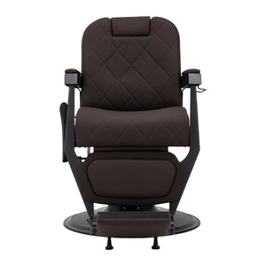 The Gabbiano Bruno barber chair is a practical, elegant piece of furniture equipped with a durable hydraulic lift and adjustable footrest, backrest, and headrest. The wide range of adjustments allows for precise adjustment of the chair to the type of treatment being performed, significantly improving comfort. Matte upholstery with decorative stitching adds elegance to the chair, making it an aesthetically pleasing addition to the salon.