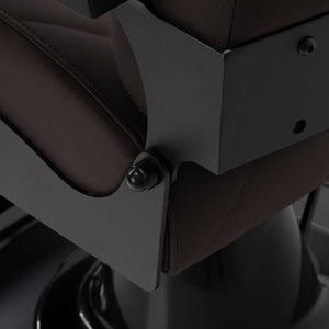 The stable construction ensures safety and long-lasting durability. The seat, filled with deformation-resistant foam, and upholstery made of soft, synthetic leather ensure durability and comfort. The moisture-resistant materials are not only durable but also easy to clean. The brown upholstery combined with a black frame gives the chair a modern and professional look, while its minimalist style allows it to fit into the décor of any barbershop.