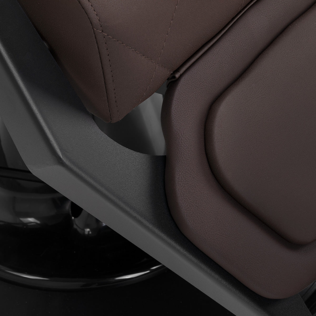 The ergonomic seat design and carefully profiled backrest ensure client comfort even during longer treatments. Upholstered armrests mounted at the optimal height allow for proper client's arm positioning, preventing tension in the neck and shoulder area. The full rotation mechanism increases work flexibility and allows for easy adjustment of the chair to any position.