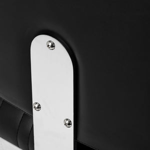 The stable base provides secure support and high comfort of use. The seat is filled with deformation-resistant foam and upholstered with semi-matt synthetic leather, guaranteeing durability and comfort for a long time. The materials are distinguished by their resistance to moisture and ease of cleaning. The black upholstery combined with metal chrome elements and a decorative footrest give the chair a distinctive, classic character. Vertical stitching emphasises the vintage style, which fits perfectly into the atmosphere of professional barbershops. Carefully refined details give the whole a representative look, and the functional design promotes comfortable and effective work.