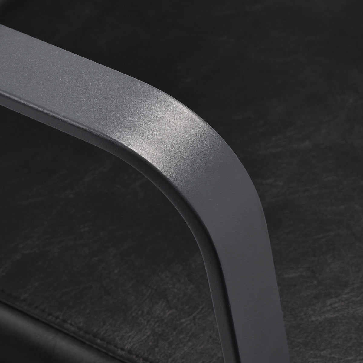 Filling with durable, deformation-resistant foam and upholstery made of pleasant-to-touch synthetic leather ensure the durability of the furniture and its comfortable use for a long time. It also makes the equipment resistant to moisture, durable and easy to clean. The black covering gives it a unique character. The equipment is distinguished by a modern design, which makes the chair look great in many professional salons.
