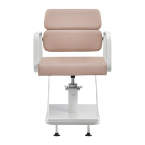 The full rotation mechanism of the chair makes the hairdresser's work more effective and comfortable. A solid, flat, square-shaped base guarantees stability during use. The matte-finished, smooth surface gives the element an elegant look and makes it easy to keep clean. A comfortable seat with foam filling ensures high comfort of use, even during many hours of treatments. Geometric, metal armrests allow for the correct positioning of the client's shoulders – this means that he does not bury his head in his shoulders or slouch – which makes it much easier to perform precise treatments, including haircuts. A stylish footrest dedicated to this model provides stable support for the user's feet.