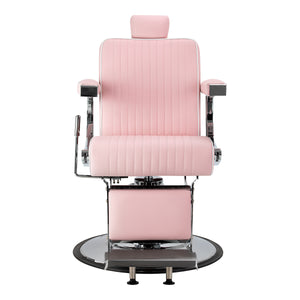 Sturdy base construction ensures stability and high comfort. The seat is filled with deformation-resistant foam and upholstered with soft, matt synthetic leather, combining durability with comfort. The materials used for the finish are moisture-resistant, durable and easy to clean, making the chair perfect for everyday use. Stylish stitching and upholstery in shades of pink give it a unique character, blending perfectly with the décor of modern barbershops.