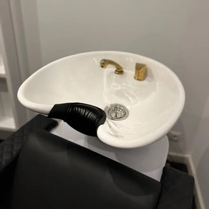 GEL NECK CUSHION A professional neck cushion for the basin, designed to provide maximum client comfort during every hair-washing service. Made from firm rubber with a soft gel section for the neck, it adapts perfectly to the shape of the neck, offering comfortable support even during longer treatments. Black