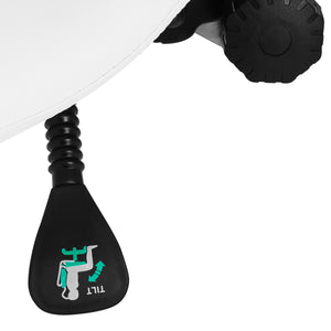 The five-spoke, properly designed base in shades of gold makes the stool stable, even during intensive work. The wheels provide significant mobility, which makes it easier to move the furniture around the office. The upholstery of the durable stool is made of imitation leather in shades of white. Thanks to the use of such material, the stool is resistant to moisture and easy to clean.