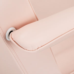The chair is filled with foam of the right firmness and covered with semi-matte imitation leather in shades of pink. Thanks to the use of such material, the equipment is comfortable to use, resistant to moisture and easy to clean. Properly profiled hems give the seat an ergonomic shape. The solid construction guarantees durability and stability. Simple design and classic colors allow it to fit into any interior.