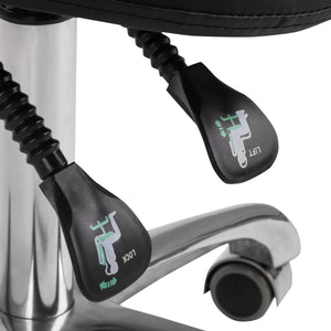 Comfortable, exclusive, stable cosmetic stool with a backrest and a profiled seat, on a five-star, very stable base. Adjustable in three planes: