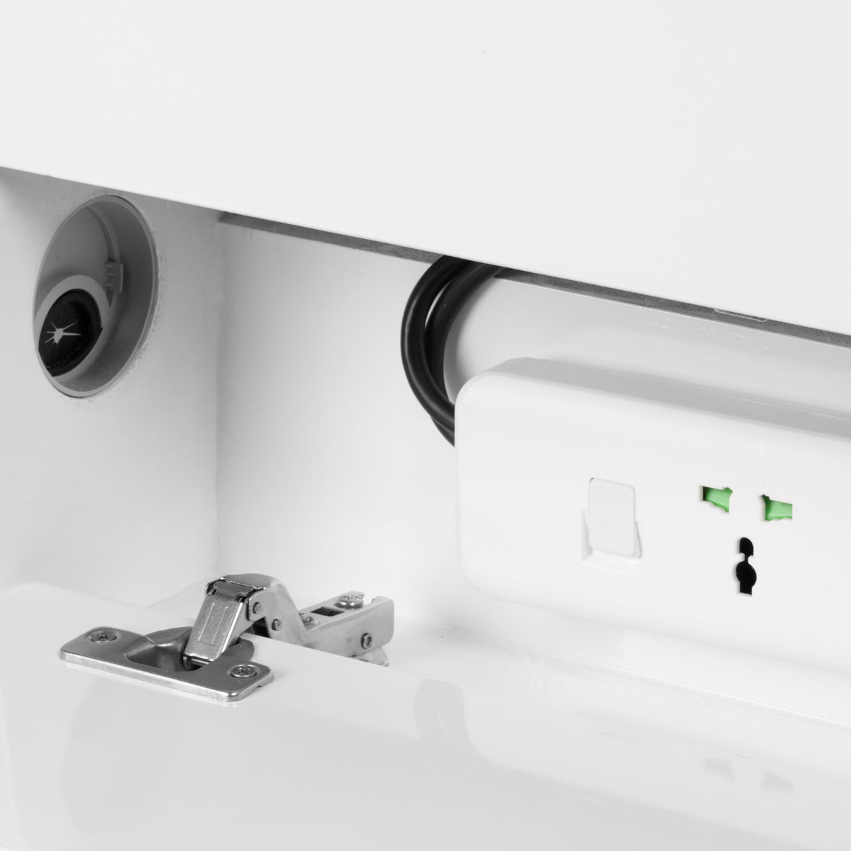A high-quality podiatry helper is a functional cosmetic piece of furniture on wheels. Thanks to your mobility, you can transport it to other treatment rooms. The assistant has a glass worktop, drawers for tools, accessories and a shelf for a podiatry milling machine or other device. One drawer has a built-in UV-C lamp for better sterility of tools and accessories.