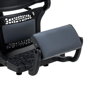 A comfortable foam-filled seat guarantees client comfort during a variety of services. The contoured backrest allows for a comfortable position, providing excellent back support, which is especially important during longer treatments. Equipping the chair with a full rotation mechanism makes work more effective and comfortable. Upholstered armrests placed at the right height ensure proper positioning of the client's shoulders, preventing the client from burying their head in their shoulders or hunching, which significantly facilitates precise treatments. The towel holder under the armrest significantly enhances work efficiency. The gap between the backrest and seat makes it easier to keep the salon clean, allowing for efficient hair removal from every corner of the chair and faster preparation of the workstation for the next clients.