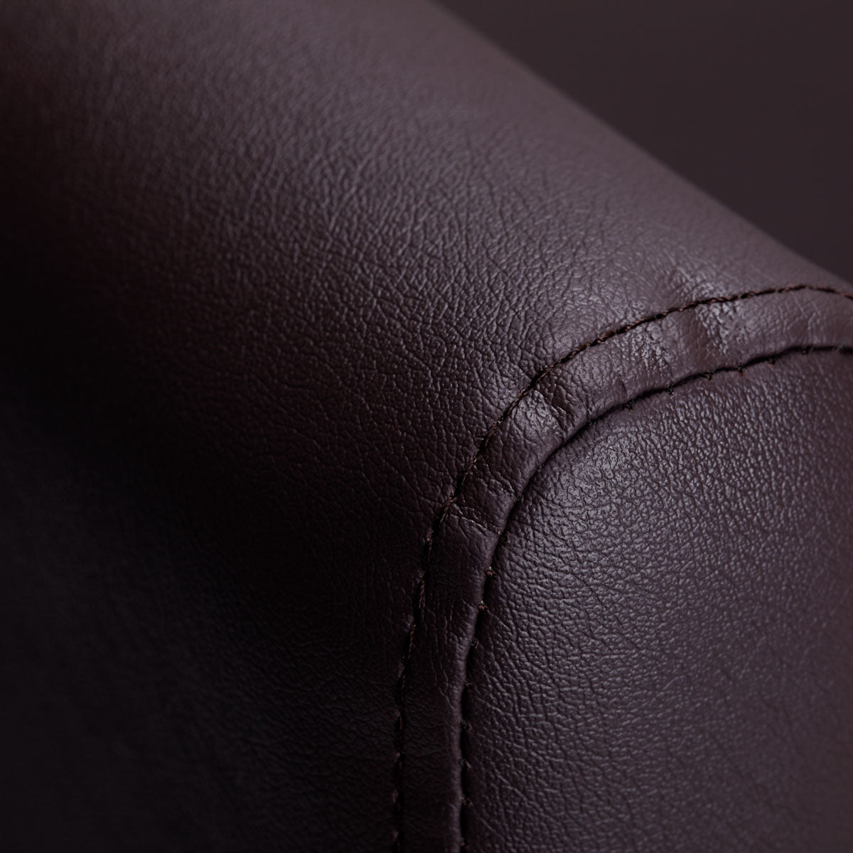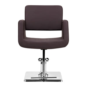 The solid, square base ensures stability during use, while its polished, smooth surface gives an elegant appearance. The seat filled with durable, deformation-resistant foam and upholstered with pleasant-to-touch synthetic leather is durable, resistant to moisture and easy to clean. The elegant brown emphasizes the timeless design, which harmoniously fits into both modern and traditional interiors of hairdressing salons.