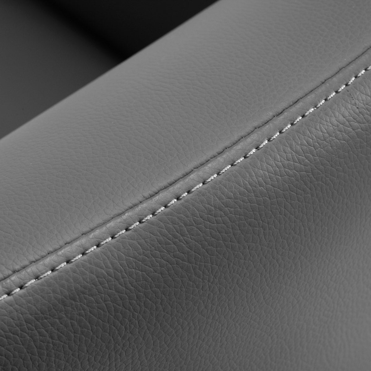 The chair is filled with foam, which is durable and does not deform, ensuring comfortable use for a long time. The upholstery is made of pleasant-to-the-touch imitation leather with a specific structure. Thanks to the use of such material, the equipment is resistant to moisture, durable and easy to clean. The covering in shades of gray and decorative elements in gold hues give it an expression of timeless elegance. Its distinctive classic finish makes it look great in almost any space.