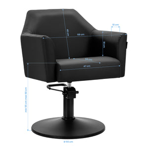 The seat with foam filling provides high comfort even during long treatments. The full rotation mechanism makes the hairdresser's work more effective and comfortable. The armrests placed at the right height support the customer's correct posture, which facilitates precise haircutting. The chair is equipped with a pull-out seat, which allows for easy cleaning and quick maintenance – important in hair salons, where hygiene and functionality of the equipment are important.
