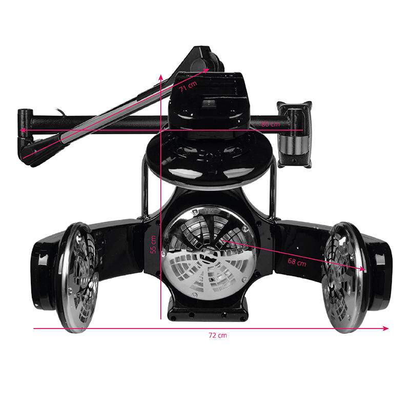 infrazon is a device used to accelerate chemical and hair care treatments. hair infra-red is a device that shortens the time of permanent waving, lightening, dyeing or simply applying a mask and absorbing it faster and better into the hair. infrazon significantly shortens the treatment time, thus saving the time of the hairdresser and the client. Electronic adjustment of parameters significantly facilitates the hairdresser's work.