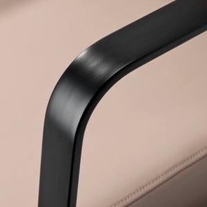 The profiled chair provides adequate lumbar support and, therefore, high comfort of use. Metal armrests in shades of black with a geometric shape allow for the correct positioning of the customer's shoulders. Filling with durable, deformation-resistant foam and upholstery made of pleasant-to-touch synthetic leather in shades of beige ensure the durability of the furniture, ease of cleaning and comfortable use for a long time. The original, elegant appearance of the hair wash unit gives the interior a unique expression. The set includes complete fittings in shades of black, including a faucet, a shower head and dedicated hoses to provide a complete set of tools for work.