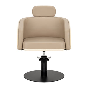 The Gabbiano Wratislavia hairdressing chair combines minimalist design with functionality and comfort for everyday use. Wooden elements on the outside of the structure add warmth and style, while the streamlined shapes add give it a light and modern character. The stable, round base in matte black emphasizes its modern character, while the soft foam filling combined with the pleasant-to-the-touch synthetic leather in shades of taupe guarantees comfort even during long treatments. Carefully selected materials make it durable, moisture-resistant, and easy to clean. It fits perfectly into both modern and classic interiors, emphasising the professional character of any salon.