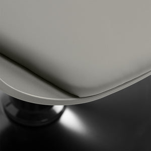 The sturdy grey plastic construction ensures durability. The materials used make the equipment comfortable to use, resistant to moisture and easy to clean. The round base in shades of black guarantees stability and strength. The minimalist grey colour, combined with the aesthetic stitching and the black of the base, makes the chair perfectly match various interior styles of hairdressing salons, introducing an elegant and modern accent.