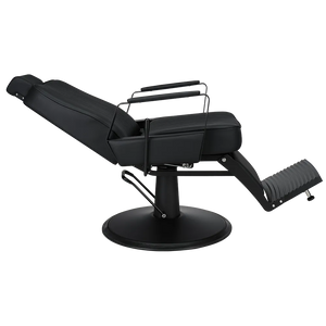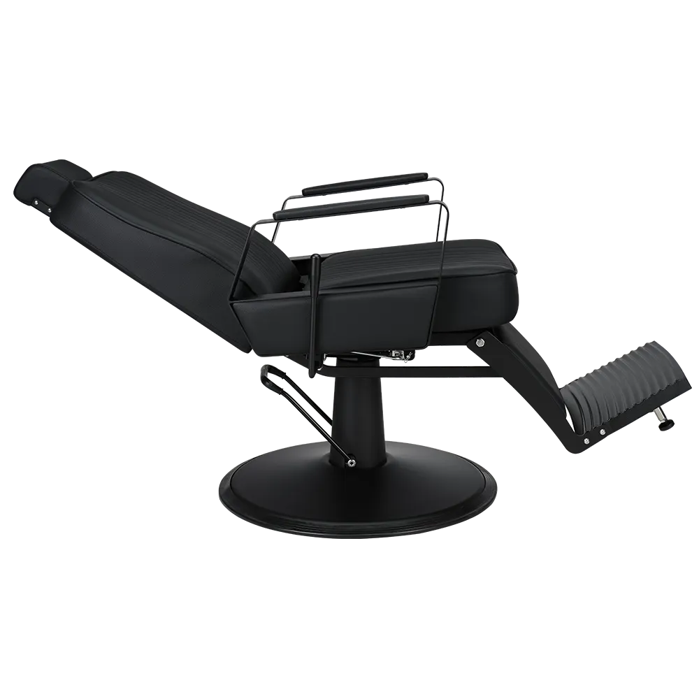 The Torp barber chair combines a classic retro design with functional ergonomics, ensuring maximum comfort for everyday barber work. Crafted with attention to detail, it offers both style and durability. Black upholstery with vertical stitching