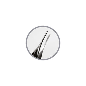 Podiatry tweezers M are made of the highest quality stainless steel. The special design of the serrated blade and pointed tip allows precise grasping of the finest elements. The size of the tweezers allows you to use a lot of force in the process of cleaning areas in the nail shafts and areas under the nail plate. The exceptional strength of the tweezers facilitates the use of the tool when applying, for example, fragments of nail plate reconstruction. The tweezers can be sterilized in an autoclave.