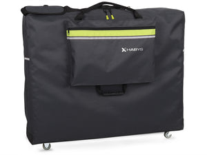 The Habys Standard massage table cover is made of highly durable material. It is perfect for transportation, protecting the table from damage. It has a spacious pocket, a shoulder strap, a carrying handle, and wheels, which allows for convenient movement with the table.
