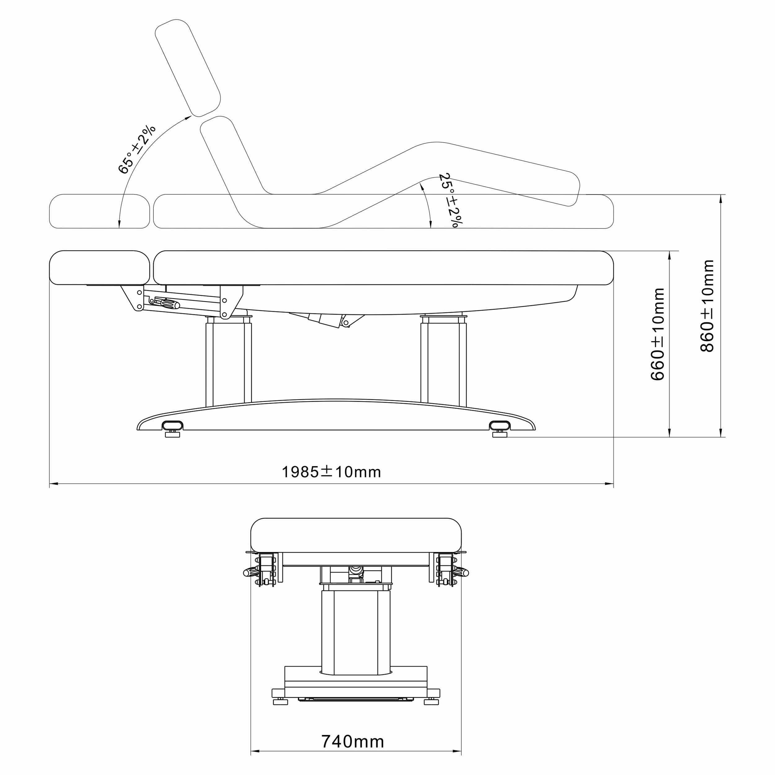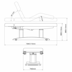4 durable motors and electric adjustment via a hand remote allow you to position the tabletop height and the angles of inclination of the headrest and footrest.