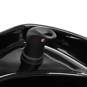 Den sorte keramiske vaskeskål med den passende dybde forhindrer overdreven sprøjt af vand og produkter, der bruges under behandlingen, hvilket muliggør behagelig udførelse af en bred vifte af tjenester. Muligheden for at justere vinklen på skålen tillader tilpasning af indstillingen til individuelle behov. Det anvendte materiale gør vaskestationen holdbar, modstandsdygtig over for pletter og ridser, og meget nem at rengøre. En korrekt profileret krave giver støtte og komfort under hårvask, og med det behagelige plastdæksel vil kunden ikke føle ubehaget forbundet med den kolde keramiske overflade.