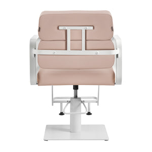 Den holdbare hydrauliske lift giver dig mulighed for at justere sædehøjden inden for intervallet 49-61 cm - selv når kunden sidder i stolen. Det sikrer mere ergonomisk arbejde, hvilket gør det muligt at justere sædehøjden til både kundens og frisørens højde. Det visuelt interessante ryglæn giver dig mulighed for at indtage en bekvem position, hvilket giver fremragende rygstøtte, hvilket er særligt vigtigt i tilfælde af lange behandlinger. En stor fordel ved denne model er hullet, der er efterladt mellem ryglænet og sædet. Det gør det lettere at holde salonen ren ved at give dig mulighed for nemt at feje hår fra alle kroge og hjørner af stolen. Dette giver dig mulighed for at strømline forberedelsen af arbejdsstationen mellem kunder.