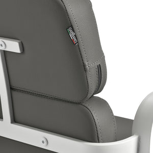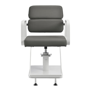 Fyld med holdbart, deformationsbestandigt skum og polstring lavet af behageligt syntetisk læder sikrer møblernes holdbarhed og dets behagelige brug i lang tid. Det gør også udstyret modstandsdygtigt over for fugt, holdbart og let at rengøre. Det grå betræk giver det en unik karakter. Udstyret er udstyret med et moderne design, hvilket får stolen til at se godt ud i mange professionelle saloner.