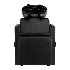 Dybden af den keramiske vaskeskål i sorte nuancer forhindrer overdreven sprøjt af vand og produkter, der anvendes under behandlingen. Dette gør det muligt behageligt og effektivt at udføre en bred vifte af frisørtjenester. Skålens mobilitet gør det nemt at tilpasse hældningsvinklen til individuelle behov. Det anvendte materiale gør vasken holdbar, modstandsdygtig over for misfarvning og ridser, og meget nem at holde ren. En korrekt profileret krave sikrer optimal støtte og komfort ved hårvask, og et behageligt dække af plastik i sorte nuancer betyder, at kunden ikke vil føle ubehag relateret til den keramiske overflades kulde.